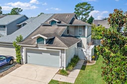 $5000 Flooring Allowance with Acceptable Offer! Prime Location! Welcome home to this 3-bedroom, 2.5-bath end unit townhome with spacious 2 car garage, perfectly positioned near everything you love. Just minutes to the St. Johns Town Center shopping and dining, 9 miles to the beach, quick access to I95 and an easy commute to Mayport Base. Inside, you'll find a bright and inviting layout with a spacious kitchen, a formal dining area and a living room with soaring vaulted ceilings. NEW energy-efficient windows (2022) and NEW double French doors, fill the home with natural light, while offering seamless connection to your private backyard retreat. Enjoy both the front and back outdoor living spaces. A gated courtyard in the front and a fully fenced back yard with plenty of space to entertain and garden. Peace of mind comes with recent updates, HVAC (2023) with warranty, Roof (2018), NEW kitchen appliances, Whole-house water softener. Low maintenance living is yours with the HOA taking care of the front yard mowing and fertilizing.