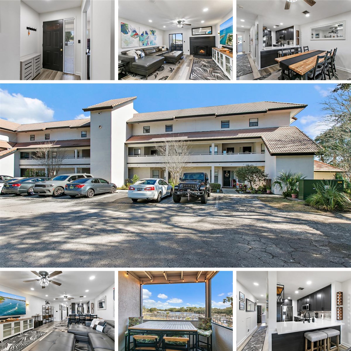 WHERE MODERN DESIGN MEETS WATERFRONT PERFECTION! Welcome to this stunning, fully renovated River Hills condo, perfectly positioned on Pottsburg Creek with direct access to the St. Johns River and Intracoastal Waterways- just a 10-minute boat ride to Downtown Jacksonville! Offering 3 bedrooms, 2.5 baths, just under 1600 sq. ft, this WATERFRONT condo has been completely transformed from TOP to BOTTOM with no detail overlooked and no expense spared. This exceptional offering includes a DEEDED boat slip with a 10,000 lb lift, making it a dream for boating enthusiasts and waterfront lovers alike. MOST FURNISHINGS ARE NEGOTIABLE, allowing you to step right into this move-in ready retreat! Sleek, high-end luxury vinyl plank flooring flows throughout, setting the tone for a refined, yet relaxed coastal lifestyle. Wake up to a sunrise and end your day with a sunset from TWO large porches(one is screened)- both offering peaceful, panoramic water views that feel like a daily escape!