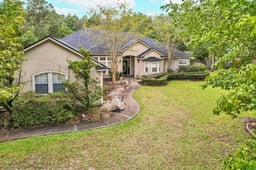 NO HOA! 4-Bedroom Home on 1.41 Acres This 4-bedroom, 2.5-bath home sits on a private, quiet 1.41-acre lot, perfect for space, privacy, and outdoor fun. Step inside through the welcoming front door to find a formal living room with built-in shelves and a stylish shiplap accent wall. To the left, enjoy a formal dining room for gatherings; to the right, a versatile first bedroom or home office. Continue into the spacious family room featuring a cozy stone fireplace. The kitchen offers plenty of counter space, a porcelain farmhouse sink, a coffee bar area, and a quaint breakfast nook. The primary suite with tray ceilings, his-and-hers walk-in closets, double vanities, built-in shelving, and a luxurious bath with a separate shower and soaking tub. Other highlights include: • Low-maintenance vinyl flooring throughout • Newer roof and water softener • Screened and covered lanai — great for relaxing or entertaining • Fenced backyard with an above-ground pool and shed With no HOA, you can bring your boat, RV, or other toys and make the most of this beautiful property!