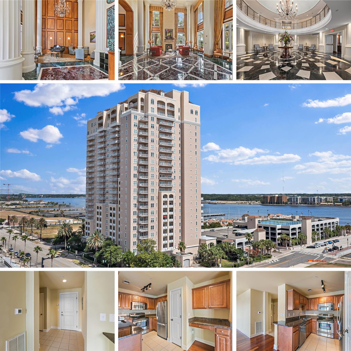 Experience the epitome of luxury living at The Berkman Plaza tower, featuring a stunning corner condo that offers breathtaking panoramic views of the river and skyline. This elegant residence boasts wood floors, an expansive balcony, granite countertops, stainless steel appliances and a full-size washer and dryer. Also included is a convenient pocket office, bathroom with an upgraded shower, a linen closet, and a walk-in closet in the master suite. Located on the river in downtown Jacksonville, The Plaza Condominiums provide easy access to offices, restaurants, museums, and entertainment venues, including Jaguar and Jumbo Shrimp games. Residents enjoy an authorized -only secure access building with gated garage, a 24/7 concierge desk, tennis and squash courts, a fitness center, sunlit pool, steam room, Swedish sauna, business center, library, billiard room, guest suite, and a 21st-floor Riverview Lounge perfect for entertaining.