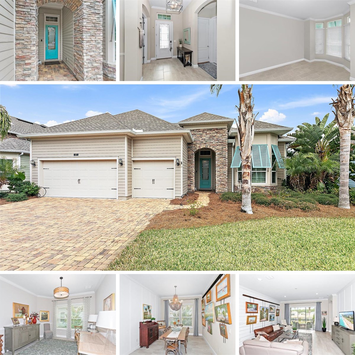 Beautiful waterfront Lennar Jasmine floor plan: 4 beds, 3 baths, study and 3 car garage. Owner pays for LAWN SERVICE! Features include dramatic glass front door, high ceilings with 8' interior doors, Quartz kitchen & bathroom counter tops, 42'' cabinets, Frigidaire Professional Series stainless steel appliances (5 burner gas cooktop, double wall oven, dishwasher, microwave, and refrigerator), wood tile in wet areas, family, dining, and halls, tankless water heater, pre-wired security system. Screened patio with lake view. Palencia amenities include family pool with waterslides, lap pool, playground, basketball court, tennis courts, Club house and fitness center. Renter's insurance required. Home is offered unfurnished.