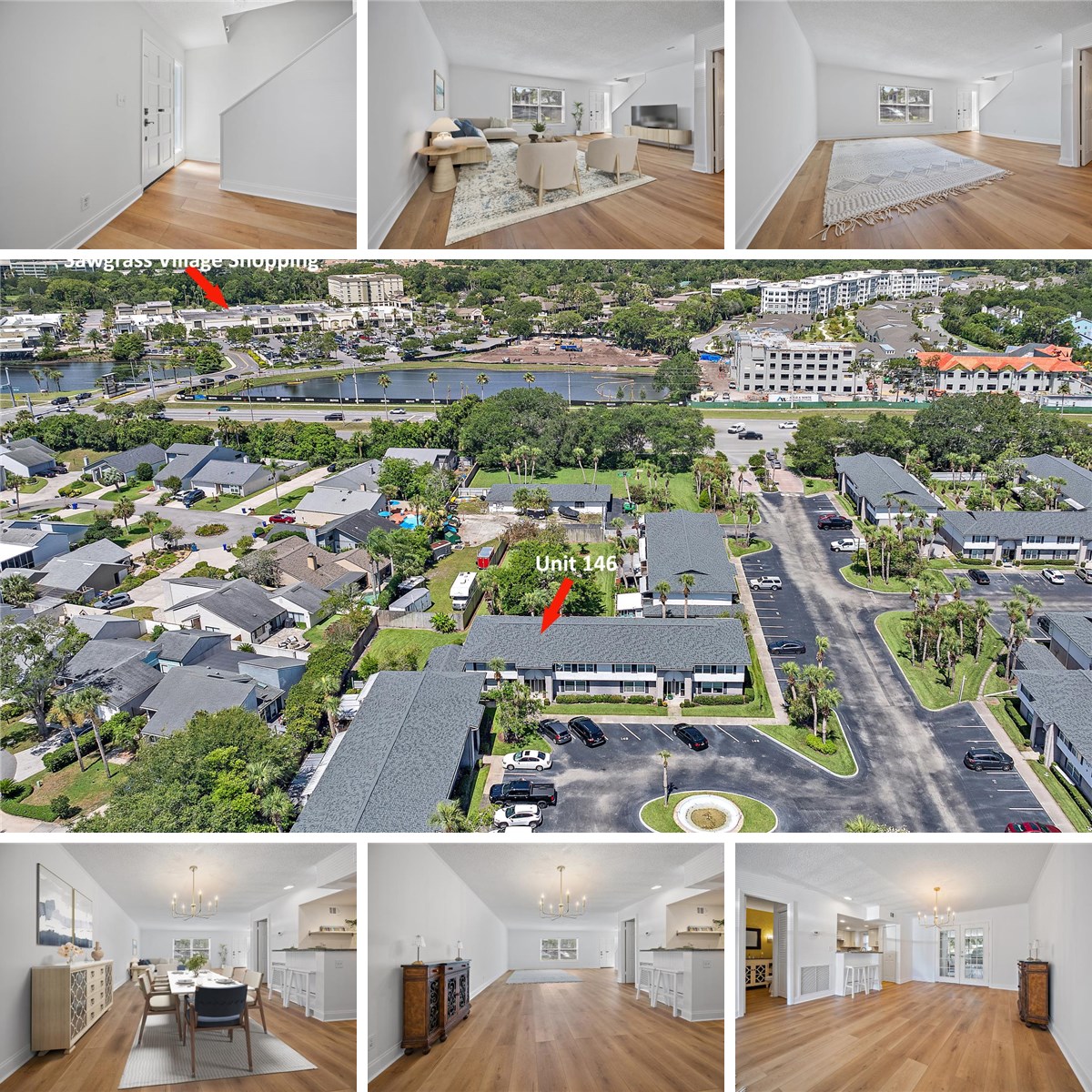 Prime location! This beautifully updated 3-bedroom, 2.5 bath condo, ideally located just across from Sawgrass Village in the heart of Ponte Vedra Beach. From the moment you enter, you'll notice the fresh, modern touches throughout—new oak flooring, updated fixtures, fresh paint and a sleek, renovated kitchen perfect for everyday living and entertaining alike. The open-concept layout flows seamlessly to a screened lanai overlooking a serene courtyard—ideal for relaxing with your morning coffee or letting your pup play in the open green space. The spacious bedrooms offer peaceful retreats, while the updated bathrooms add a touch of everyday luxury. This home is truly move-in ready with a 2020 HVAC, newer water heater, new gutters and a new roof. Enjoy a lifestyle of convenience with top-rated A+ Ponte Vedra Beach schools, nearby dining, shopping, and just minutes to the beach. Community amenities include a pool, tennis courts, basketball court, clubhouse and sidewalks, perfect for a bike ride to the beach or an easy walk to the local elementary school. Whether you're a first-time buyer, downsizing, or investing, this condo offers the perfect blend of location, value, and comfort."