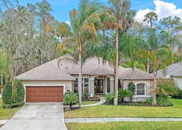 Discover a home you'll fall in love with! This stunning 5-bedroom, 4-bathroom residence is perfectly situated w/ a scenic nature preserve both in the backyard & across the street. On the first floor, enjoy the spacious primary bedroom w/ sliding doors leading to the covered lanai, alongside a nearby ensuite guest room. The layout also includes a formal living & dining area, a generous sized kitchen w/ views of the family room featuring vaulted ceilings & a cozy gas fireplace, two additional bedrooms sharing a bathroom, & a large laundry room w/ a sink & ample storage. Upstairs, find a versatile bonus room/bedroom w/ its own ensuite bathroom.