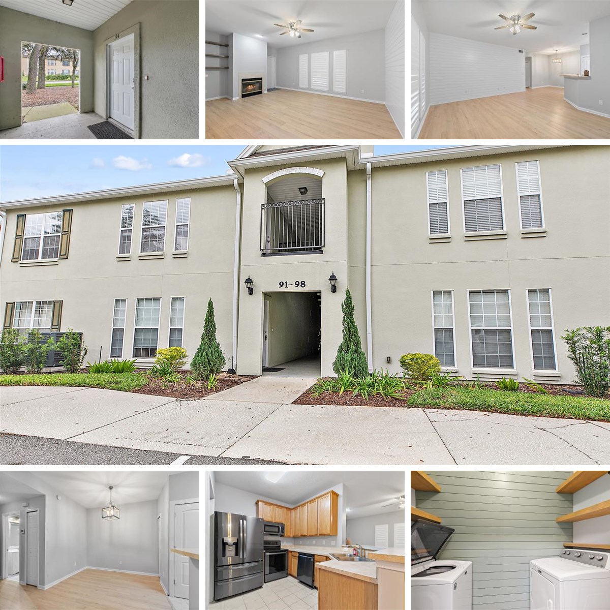 Welcome Home.... to this exceptionally well maintained home in the highly sought after community of Jardin De Mer. This gem is a rare find on the first floor with a small back patio & direct access to nature areas surrounding the community. Your new home also comes with a garage in the community row plus private storage area. This beauty boasts of an open floorplan with cozy fireplace set up well for entertaining & tall ceilings with exceptional natural lighting that make the space feel larger. Features include Hard Surface Flooring throughout, Newer A/C & Water Heater, Accent Wall features, Shutters throughout, Updated utility with Washer & Dryer & a dramatically remodeled Master Bath with huge shower all done in 2022 & 2023. You will enjoy the built in storage in the guest room that would also make a great office. This property is conveniently located in the community close to the entry and just minutes from the Beach, Golf Course, the Gym, Dog Park, Shopping & Restaurants!