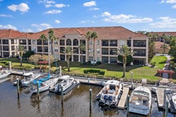 Welcome to this stunning 3-bedroom, 2-bath condo in the prestigious Mira Vista community. Spanning 1,690 sq. ft., this 1st floor unit offers breathtaking marina views and unparalleled convenience. This has been a part-time vacation home for the seller. He is marketing the condo fully furnished for someone that desires a turn-key opportunity. The Living room and primary bedroom sliders include electric shades for privacy but who wants to block out the views of the marina! The spacious primary suite features two walk-in closets while the screened porch invites you to unwind as you take in the serene waterfront scenery. Mira Vista is a highly sought-after, gated neighborhood with 24/7 guard service, offering a tranquil and secure living environment. This is a rare opportunity to enjoy luxurious waterfront living in a serene, secure setting. There is a detached 1-car garage across the parking lot from the condo. The association fee includes water, sewer, and cable.