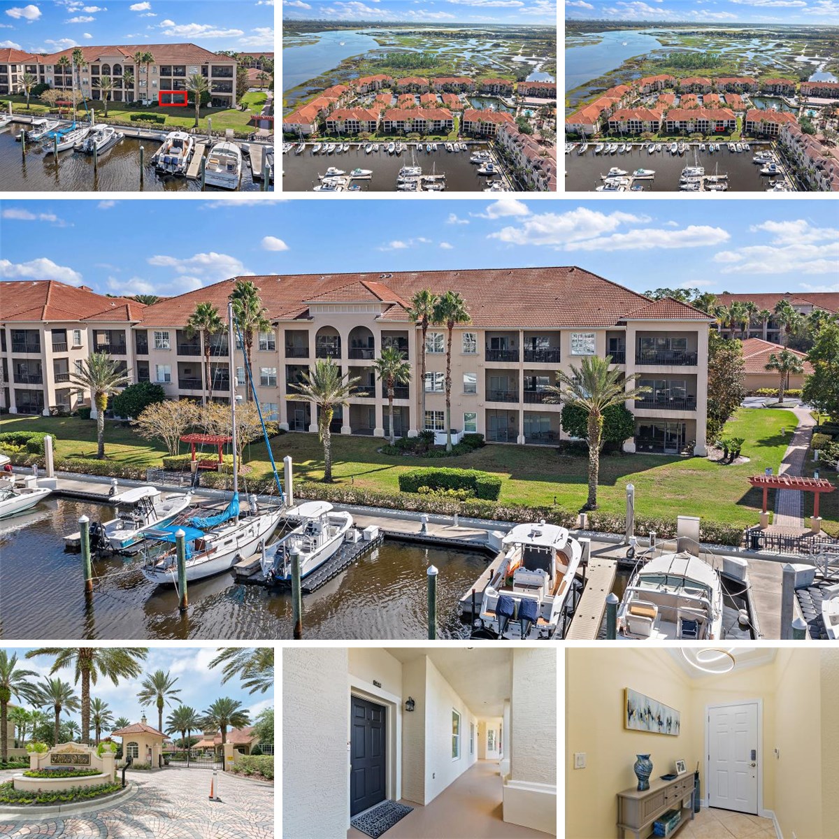 Welcome to this stunning 3-bedroom, 2-bath condo in the prestigious Mira Vista community. Spanning 1,690 sq. ft., this 1st floor unit offers breathtaking marina views and unparalleled convenience. This has been a part-time vacation home for the seller. He is marketing the condo fully furnished for someone that desires a turn-key opportunity. The Living room and primary bedroom sliders include electric shades for privacy but who wants to block out the views of the marina! The spacious primary suite features two walk-in closets while the screened porch invites you to unwind as you take in the serene waterfront scenery. Mira Vista is a highly sought-after, gated neighborhood with 24/7 guard service, offering a tranquil and secure living environment. This is a rare opportunity to enjoy luxurious waterfront living in a serene, secure setting. There is a detached 1-car garage across the parking lot from the condo. The association fee includes water, sewer, and cable.